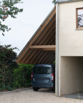 In Oosterzele, a modest renovation gave new character to a rural home. The intervention was subtle but distinctive: a sculptural carport was added, extending the architecture into the landscape. Its form responds to the rhythm of the house and the surrounding greenery, creating a sheltered threshold between arrival and dwelling. The result is a small but thoughtful gesture — one that enhances the everyday with clarity and care.